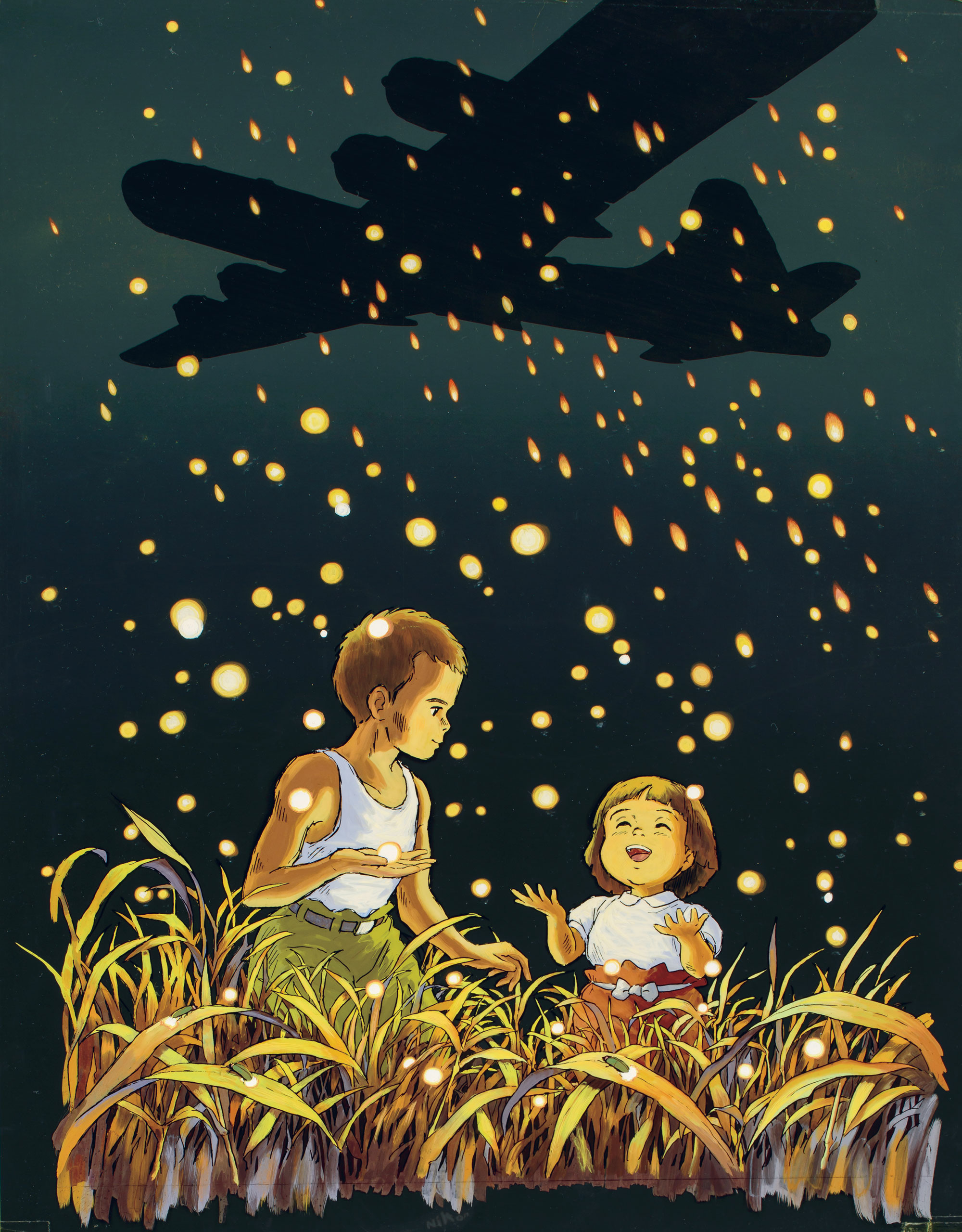 En 1988, sort sur les écrans de cinéma au Japon « Le Tombeau des lucioles », cinquième long-métrage réalisé par Isao Takahata. Produit par le Studio Ghibli, le film raconte le destin tragique de deux enfants, un frère et une sœur, dans la ville de Kobe ravagée par les bombes américaines, aux derniers jours de la Guerre du Pacifique. Adapté du court roman semi-biographique de Akiyuki Nosaka, le film de Takahata renverse la perspective de l’œuvre originale pour appeler ses contemporains à un regard lucide sur le passé. Il signe-là un chef d’œuvre sombre, sans concession, où le réalisme atteint un sommet à la fois par le soin porté à la reconstitution historique et l’expression de la psychologie des personnages.