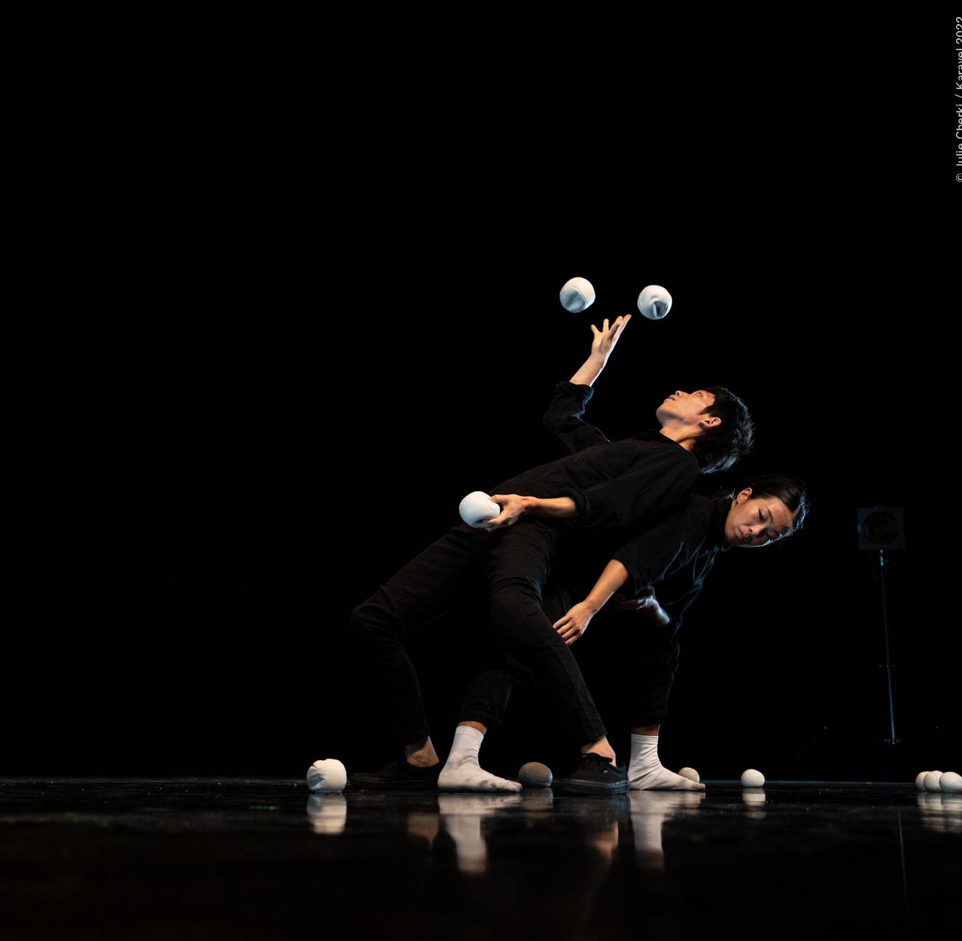 フランスで活躍する日本人であるこの二人。両者の出会いから生まれたデュオ作品『Good Job』は、ダンスとジャグリング、身体とオブジェとの対話を描き出します。