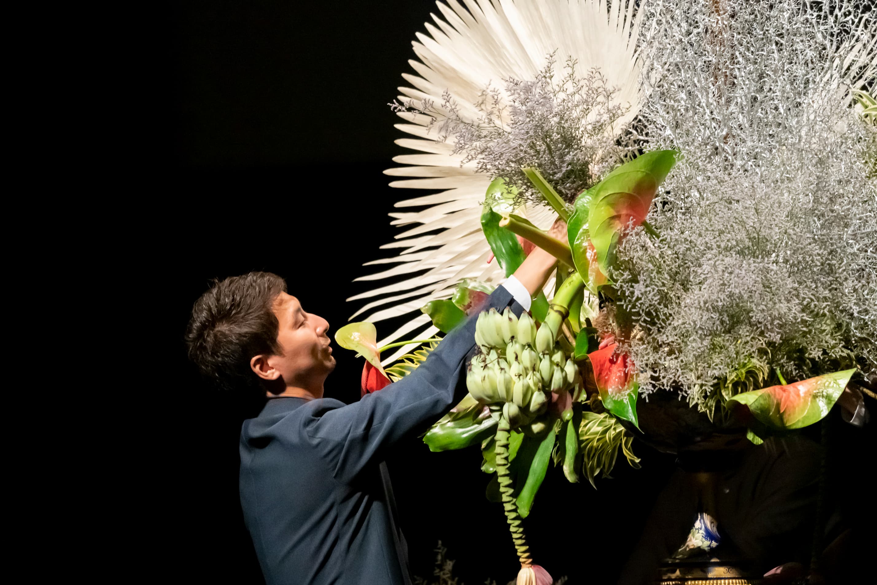小原宏貴家元が舞台でいけばな作品を制作し披露します。